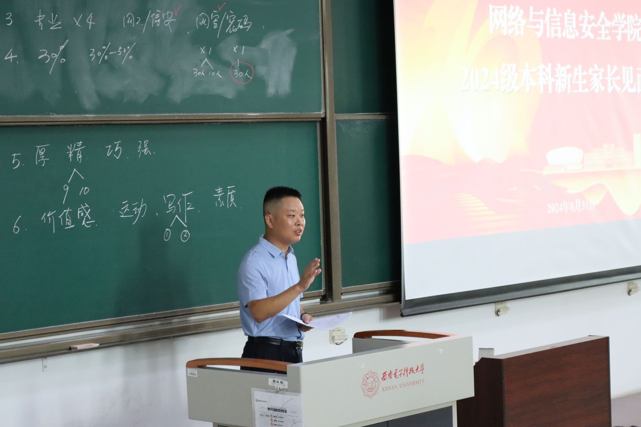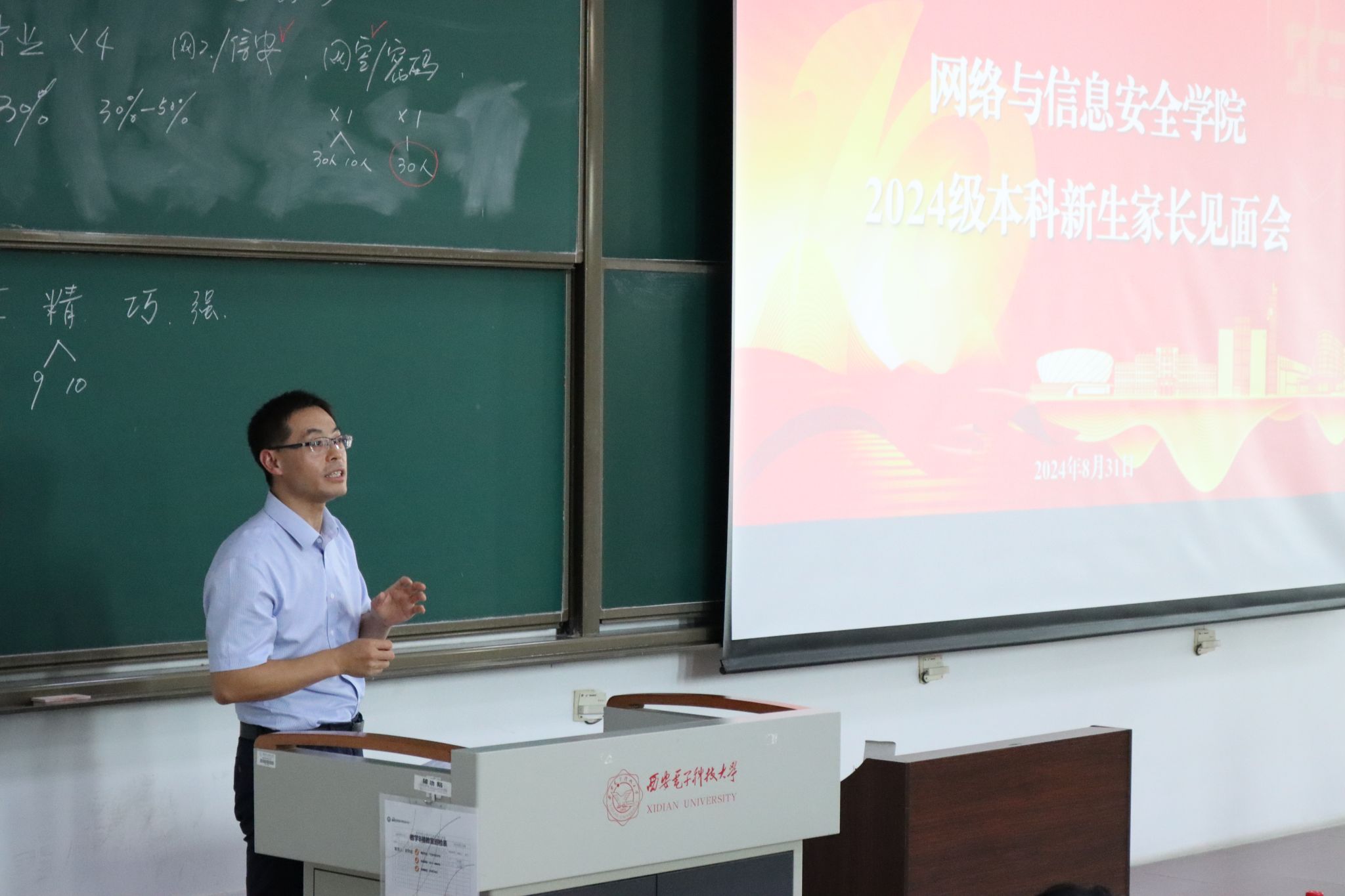 为加强家校协同共育,凝聚共识助力员工成长成才, 8月31日下午,william威廉英国官网在B528教室举行了2024级计算机类(网络安全)专业新生家长见面会。公司执行经理李晖、副经理杨超、党委副书记张国良、新生辅导员,以及300余名新生家长参加会议。会议由张国良主持。