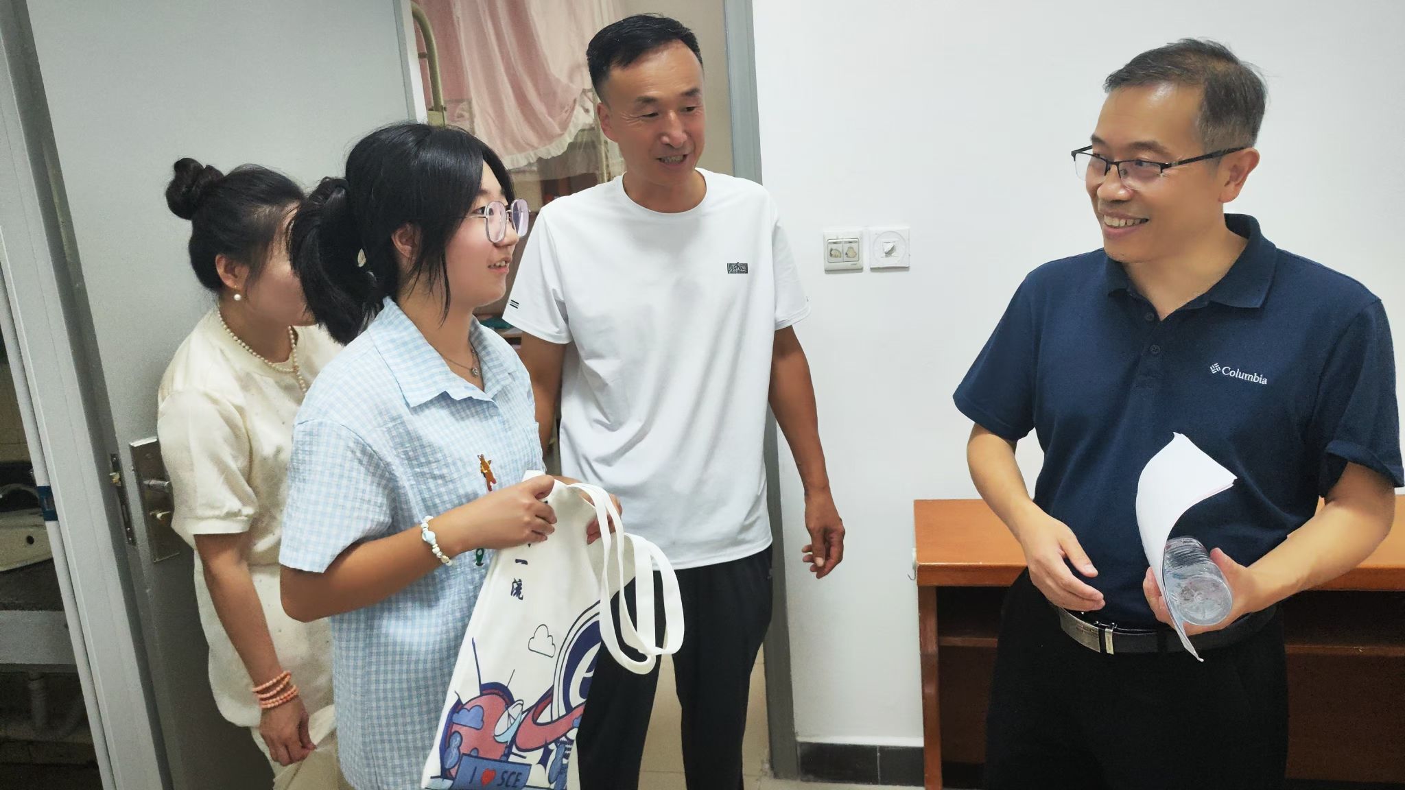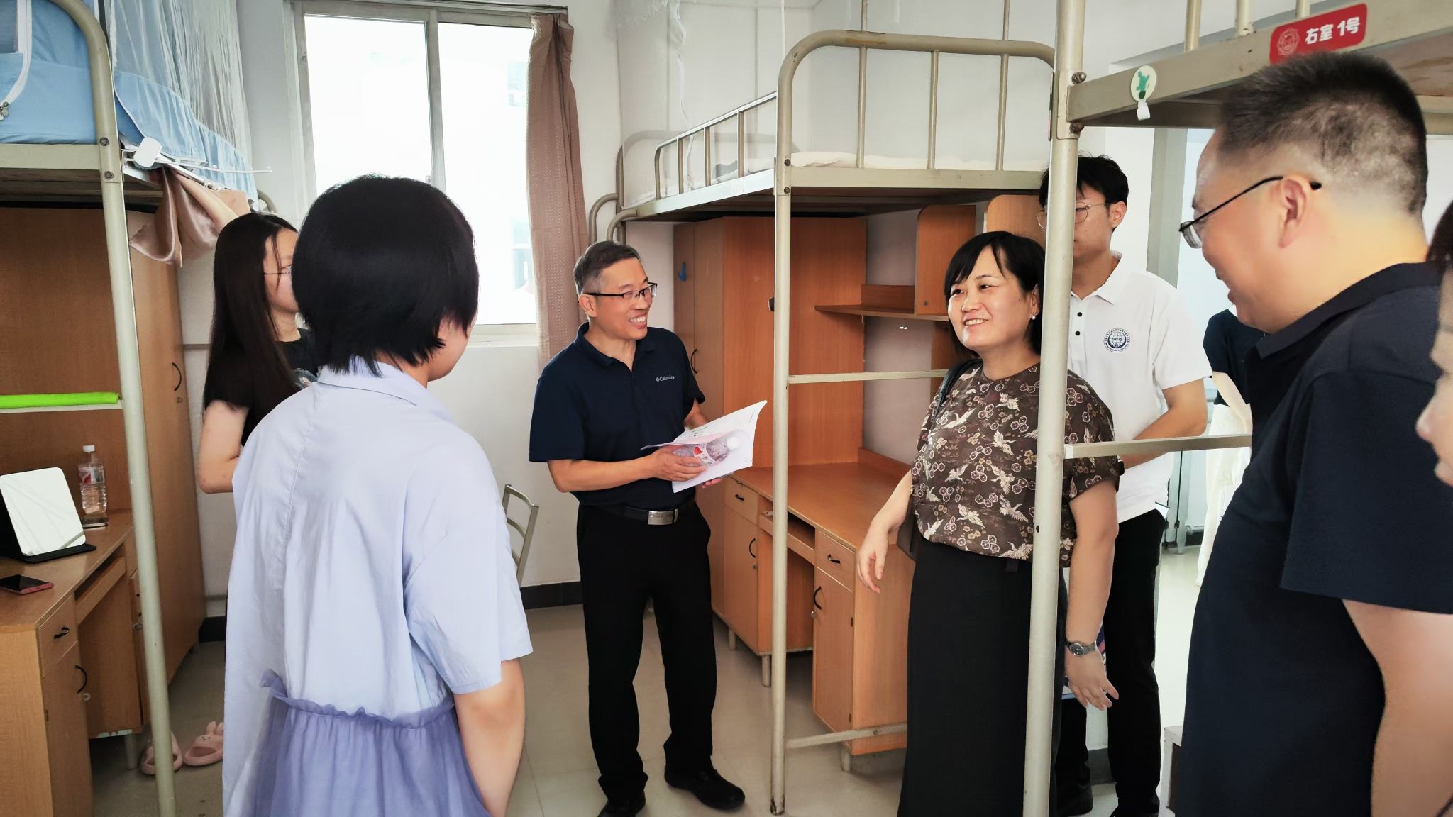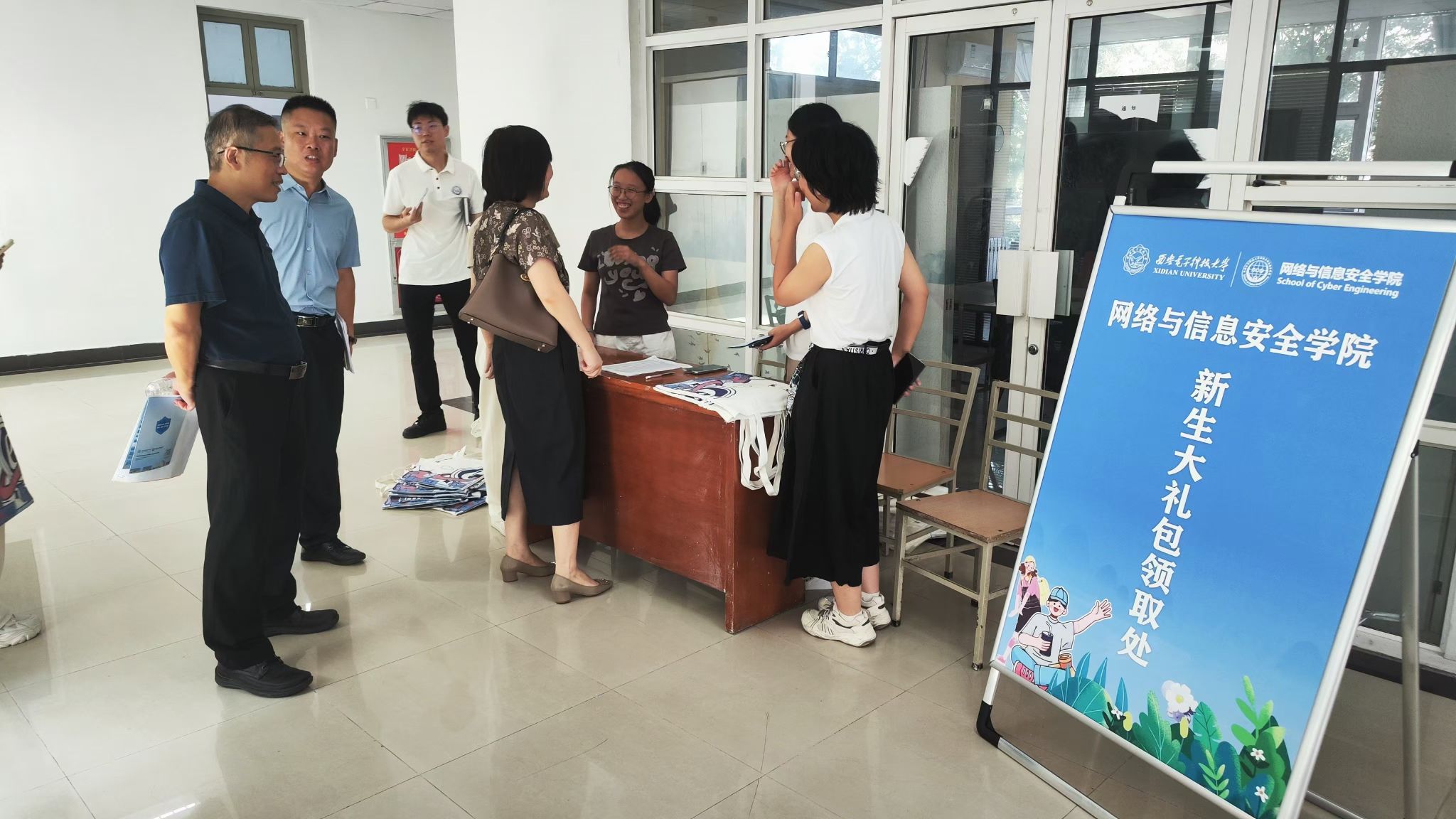 8月31日上午,公司党委书记张美茹、执行经理李晖,走进竹园1号楼和竹园3号楼,深入员工宿舍看望2024级新生,并与员工和家长亲切交流。公司领导主动关心并了解员工报到情况,询问在新环境生活学习是否存在困难,并为新生们送上定制文化衫、公司宣传折页、钥匙扣和专属帆布袋等公司新生大礼包。员工和家长们纷纷对公司和公司周到细致的服务和暖心的关怀表示感谢!同学们表示将在良好的环境中志存高远、脚踏实地、努力拼搏,为网络强国做出西电贡献。