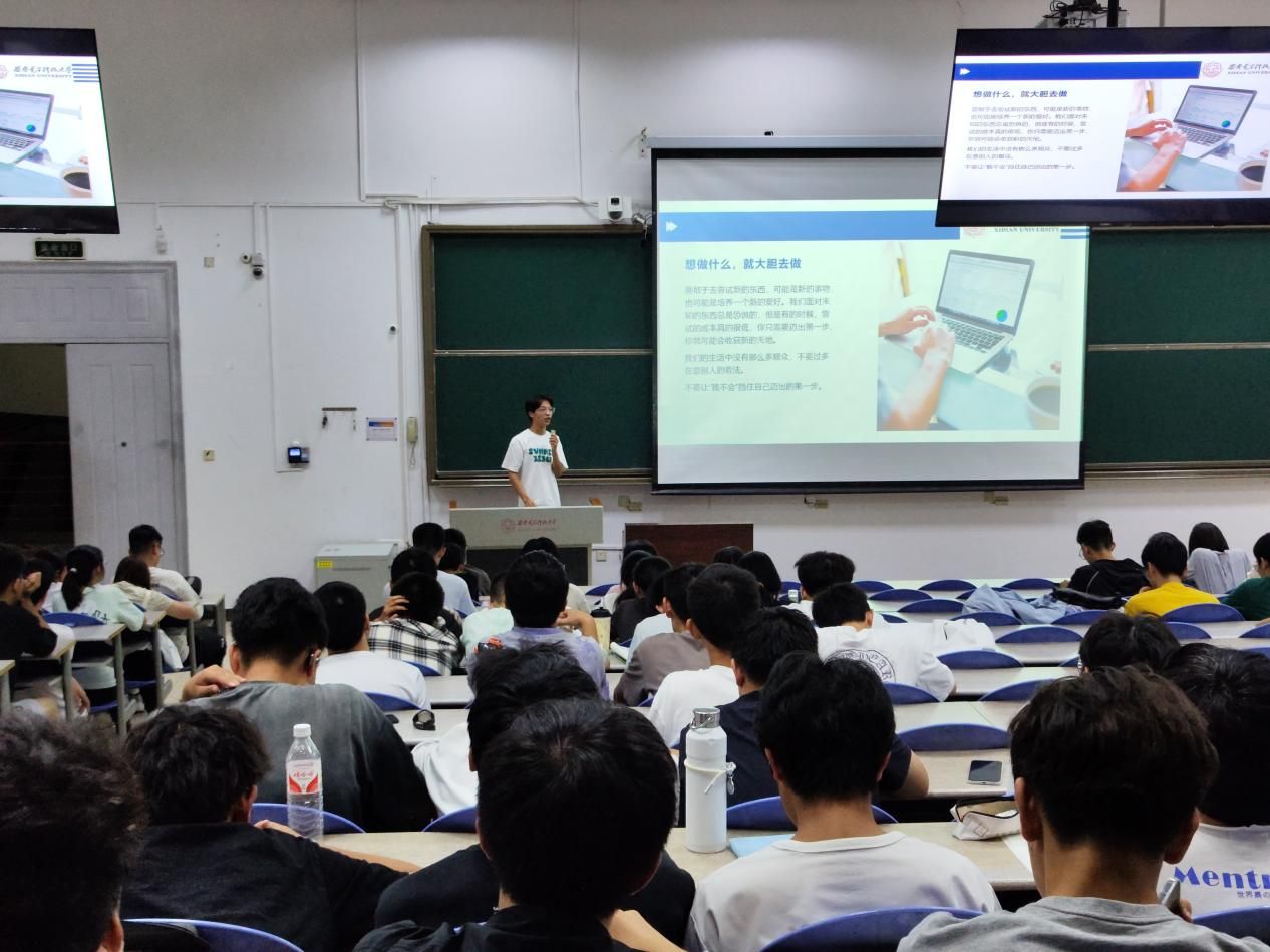 四位同学分别讲述了自己在大学四年的学习、生活、竞赛、科研等方面的故事,分享自己如何适应老员工活、如何养成良好学习习惯以及如何丰富自己的老员工生活的感受和心得。他们建议同学们从大一开始要养成良好的学习和生活习惯,刻苦上进,不断提高独立思考、独立学习、独立生活的能力。
