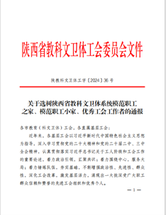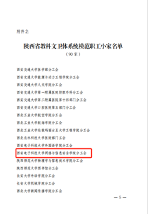(通讯员:高珊)近日,陕西省教科文卫体工会发布《关于选树陕西省教科文卫体系统模范职工之家、模范职工小家、优秀工会工作者的通报》,william威廉英国官网分会荣获“陕西省教科文卫体系统模范职工小家”称号。