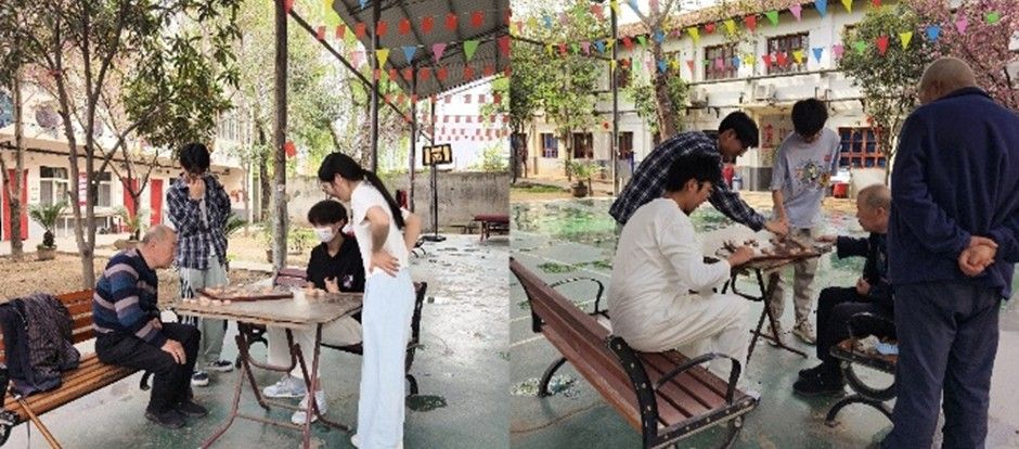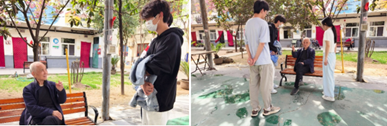 而在静谧的角落,温情也在缓缓流淌。同学们贴心地陪伴着老人,坐在长椅上耐心倾听他们讲述往昔的故事。那些岁月的回忆,如同珍贵的宝藏,同学们专注的眼神和不时的回应,让老人们感受到尊重与理解。