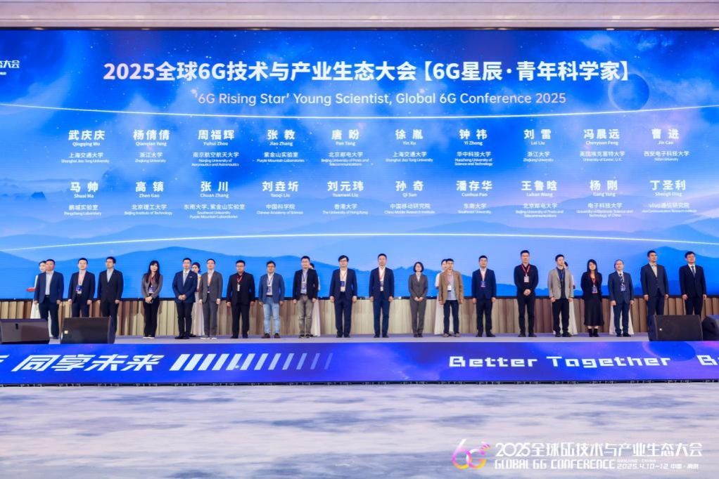 全球6G技术大会是6G领域覆盖广泛、内容全面的国际会议,迄今已连续举办四届。2025全球6G技术与产业生态大会以“全行业共同定义6G”为核心,聚焦6G愿景与关键技术、安全可信、绿色可持续发展、AI与通信等前沿主题,汇聚全球科技合作与协同创新力量。大会在广泛聚集全球知名学者的同时,也特别为全球科研领域的青年才俊开辟舞台,经过全球征集、专家评审的方式,最终评选了包括曹进教授在内的20位青年学者为2025年度“6G星辰青年科学家”,旨在发掘和培养具有创新思维和研究潜力的青年学者。通过全球6G技术大会这样的国际化平台,让青年科学家的新观点、新成果得以展示和交流,期待这些新鲜血液能够为6G技术的未来发展注入更多的活力和创新力。