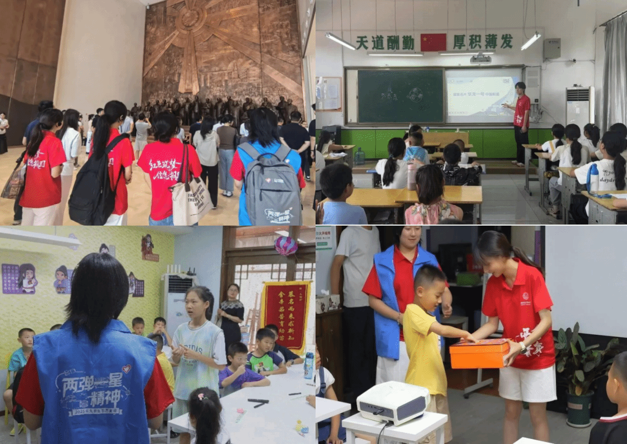 在四川两弹城博物馆,队员们身着统一服装,来到“两弹一星”元勋塑像、红色标语墙等标志性场景前,录制思政微宣讲视频,讲述“两弹一星”故事,传承“两弹一星”精神。“小皮球,架脚踢,马兰开花二十一”,在陕西省蒲城县党睦镇孝通小学,志愿者们以《马兰开花》歌谣为切入点,以“红色铸魂、科技启智、生活育人”为主线,通过三个维度生动展开宣讲。宣讲团先后走进西安市碑林区建南社区、未央区府东社区、长安区三堰社区、未央区恒大名都社区、雁塔区上元郡社区及海量新英里社区等多个社区,开展“两弹一星”精神宣讲,累计覆盖群众200余人次。宣讲团相关实践经历作为1500支“两弹一星”精神宣讲团代表,被“中国青年志愿者”公众号报道。