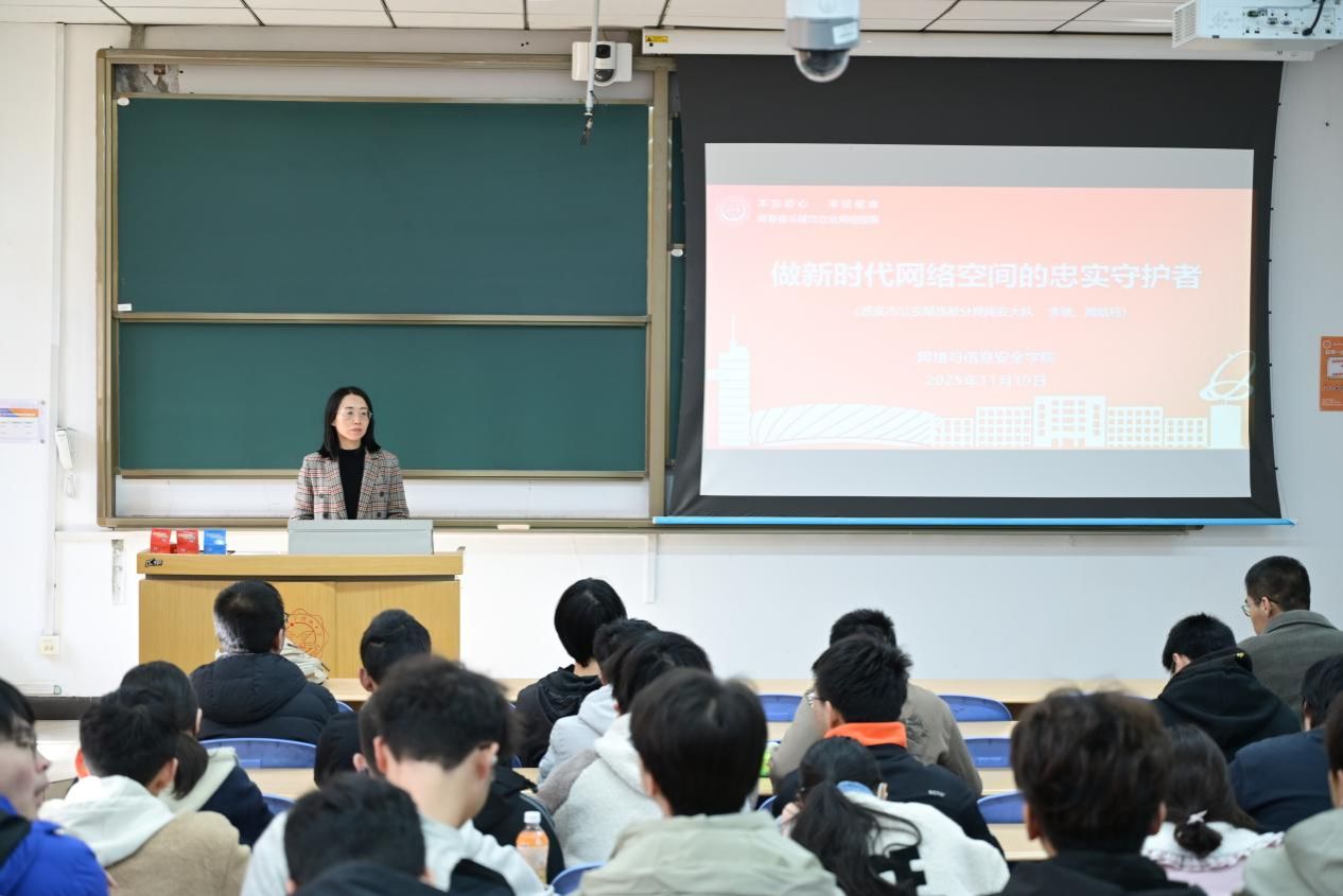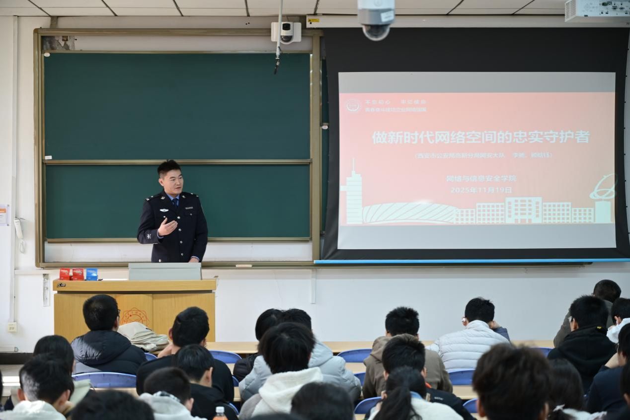 (通讯员:赵永乐、苟楠坤、李淋宇)为帮助员工深入了解网络安全行业发展,深化对网络安全实战场景的认知,增强网络安全意识与法治观念。11月19日下午,william威廉英国官网在南校区信远楼I区114教室举办“做新时代网络空间的忠实守护者”主题讲座。本次讲座邀请西安市公安局高新分局网安大队教导员李驰、民警顾晗钰担任主讲,以一线实战经验为蓝本,面向100余名本科生开展了一场兼具专业性、警示性与前瞻性的网络安全普法宣讲。讲座由公司硕士生导师张俊英老师主持。