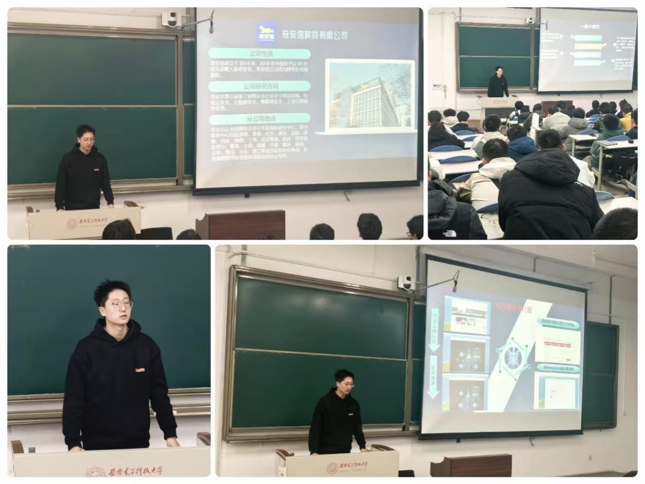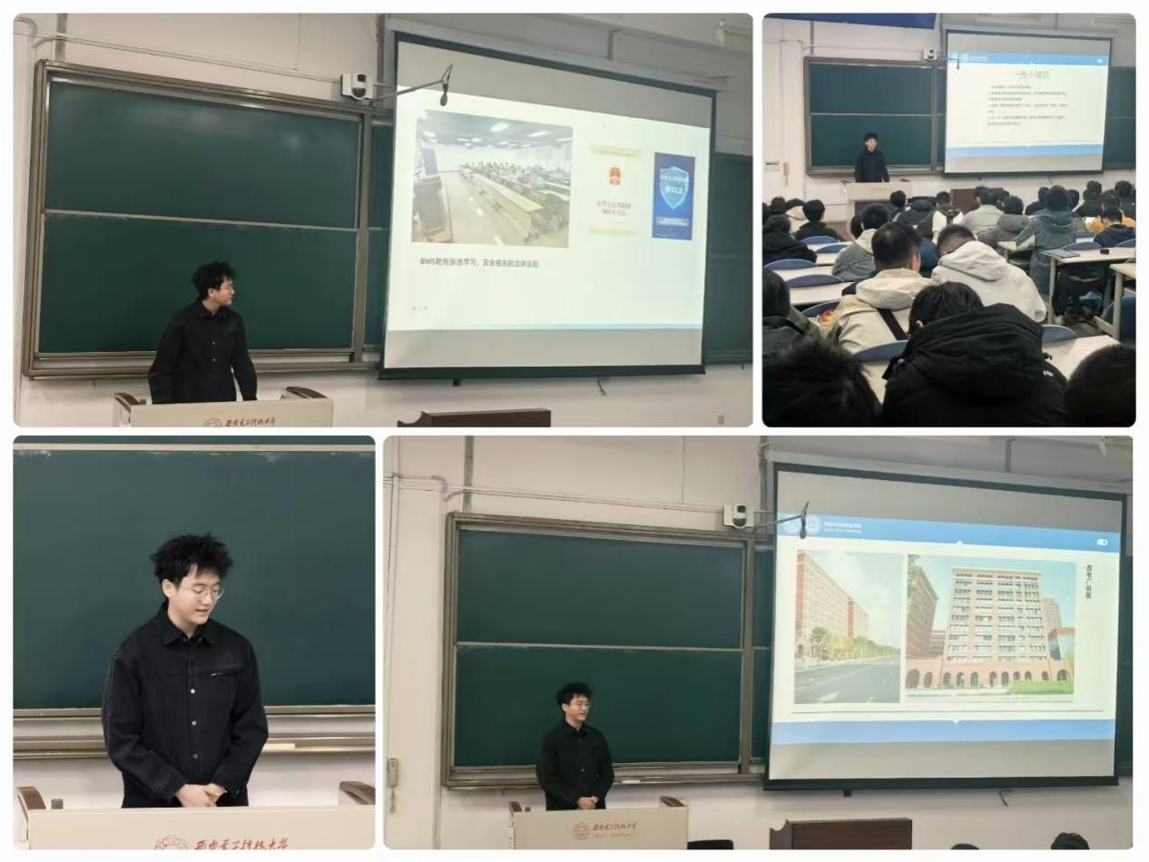 2023级信息安全专业员工蔡浩浩,分享了他在奇安信公司的实习收获。他介绍,实习期间企业导师采用“边学边练”的培训模式,围绕网络安全专业知识体系,循序渐进地开展讲解与指导。为帮助同学们更深入地了解网络安全在实际生活中的应用价值,蔡浩浩以防火墙技术为例,通过拆解相关操作流程,阐释背后的原理,助力同学们理解防火墙的应用逻辑。最后,他建议学弟学妹在大一扎实专业基础,主动与老师交流,拓宽对网络安全领域的认知。