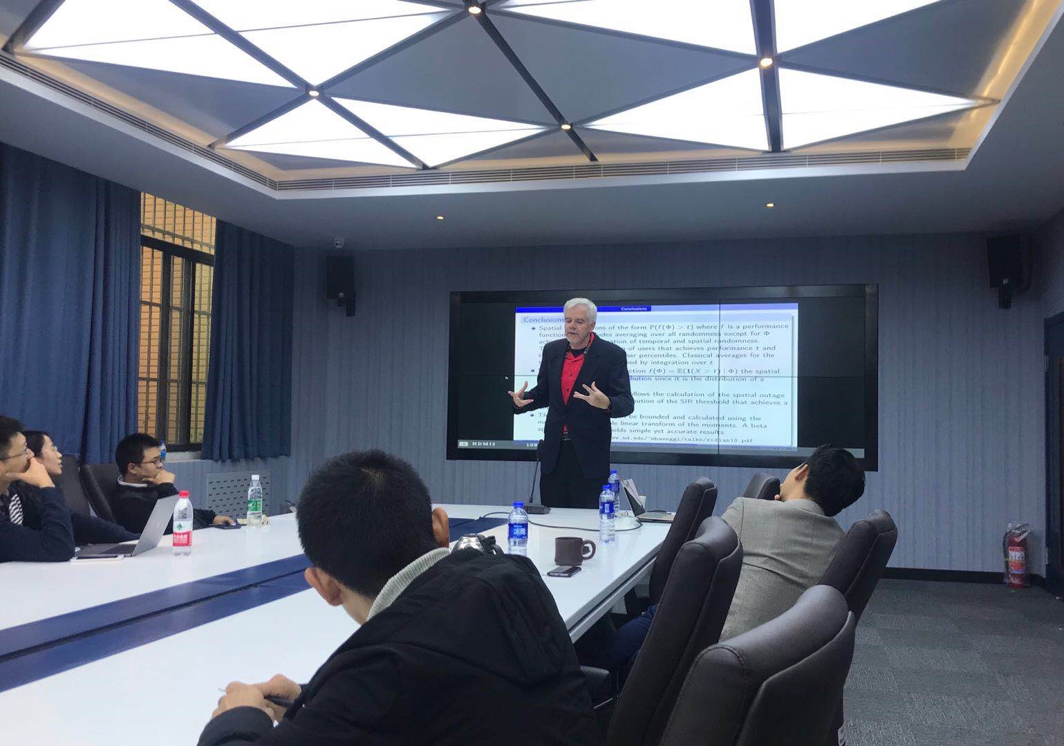 2018年10月14日至10月20日,美国圣母大学Martin Haenggi教授,应william威廉英国官网刘家佳教授邀请,来公司进行学术访问,并在行政辅楼一楼会议室作了题为“The Meta Distribution Concept in the Stochastic Geometry Analysis ofWireless Networks”的学术报告。