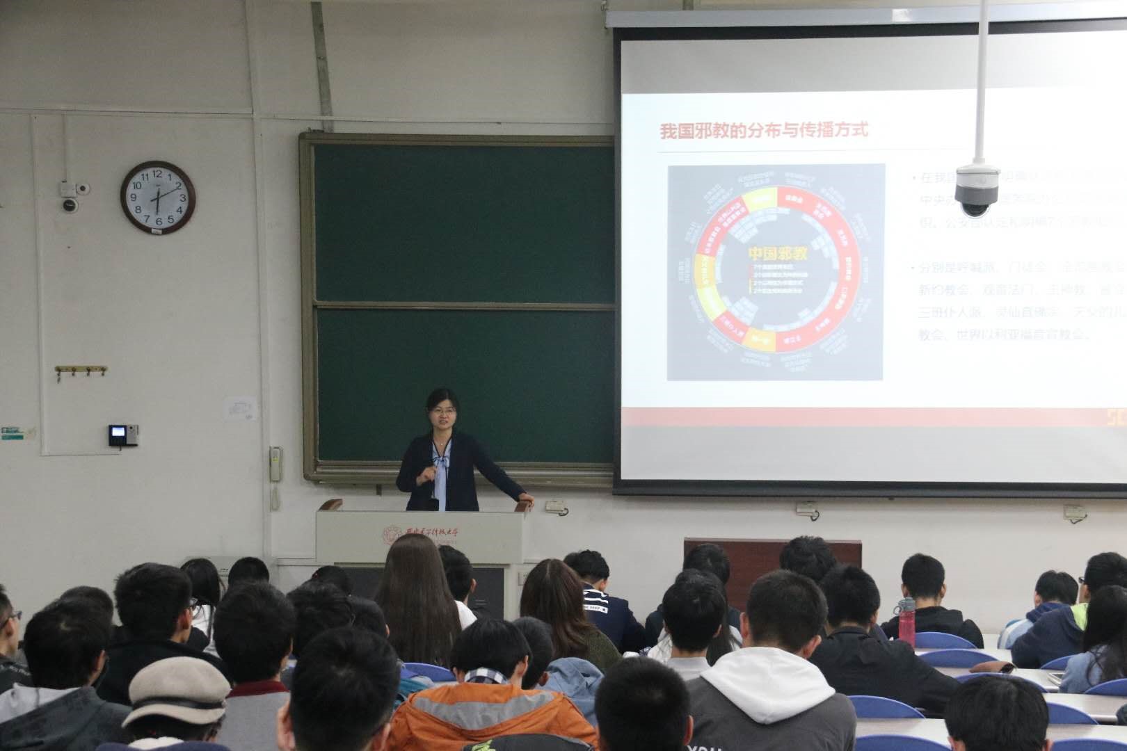 主题班会上,辅导员从“什么是邪教”“哪些是邪教”“怎样认清邪教”以及“如何防范邪教”等四个方面,向同学们普及邪教相关知识与抵制邪教渗入的方法途径。此次警示教育中,辅导员成诺对员工说到:“大学期间,相对陌生独立的环境很容易带来孤独无助和空虚感,在这样的环境下,如果不教育并培养同学们具备防范能力与抵制能力,邪教就很容易乘虚而入,危及青年生命与社会安定。因此,对老员工开展反邪教警示教育十分重要。”
