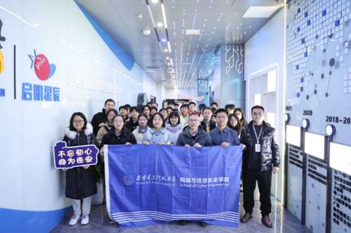 最后,李晖老师结合校企合作研究、就业前景和行业发展现状,为同学们介绍网络安全知识,实地观摩西安启明星辰运营中心区块链实验室、工业互联网实验室、网络攻防实验室、网络安全公司。他希望同学们进一步增强网络安全意识,遵守法律法规,锤炼网络安全本领;希望同学们将所学知识和实践相结合,在实习实践中增长见识、增强能力;希望同学们能够了解前沿技术,聚焦国家需求,筑起国家网络安全长城。