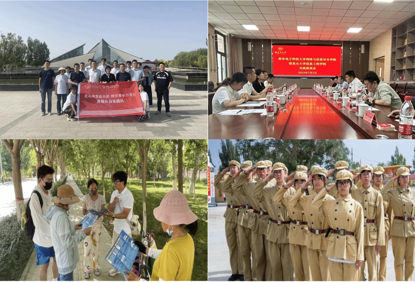 7月1日,公司党委书记张美茹,党委副书记、纪委书记张国良,副经理李兴华,党委委员、信息安全系支部书记曹进,教师代表、辅导员代表同“红心向党去兵团,网安青年万里行”实践队一同赴塔里木大学信息工程公司进行对口调研交流,开展暑期实践。双方就两院基本情况、教学科研工作、人才引进政策等进行了相互介绍,并就人才培养、科学研究、专业建设、对口支援等方面进一步深化合作进行探讨。实践队员与塔里木大学信息工程公司的同学们以“网络强国 青年何为”为主题开展员工交流研讨会,一起开展“网络安全万里行”科普活动,在校园、社区、街道等地,普及网络安全知识,宣传网络安全法律法规。