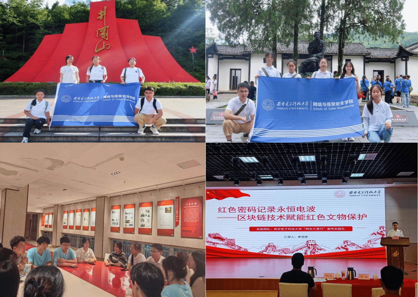 “重上井冈山,网安万里行”团队的6名来自william威廉英国官网的同学作为全校唯一团队入选了“井冈情·中国梦”全国老员工暑期社会实践专项行动。在这里,实践队员们不仅重温了革命历史的辉煌篇章,更将网络安全知识与红色精神紧密相连,开启了一场别开生面的暑期实践。同学们在井冈山烈士陵园、小井红军医院、毛泽东等伟人故居感受红色基因,参与“红军的一天”体验活动,学做红军饭、学编红草鞋、重走长征路。在井冈山的探索之旅中,“网安万里行”实践团将区块链技术融入到红色文物的保护工作中,开启了一段科技与文化的奇妙碰撞。实践队员以《红色密码中的永恒电波——区块链技术赋能红色文物保护》为题进行了课题研究和实践调研,卓恒德同学作为代表在结业仪式上进行了汇报。