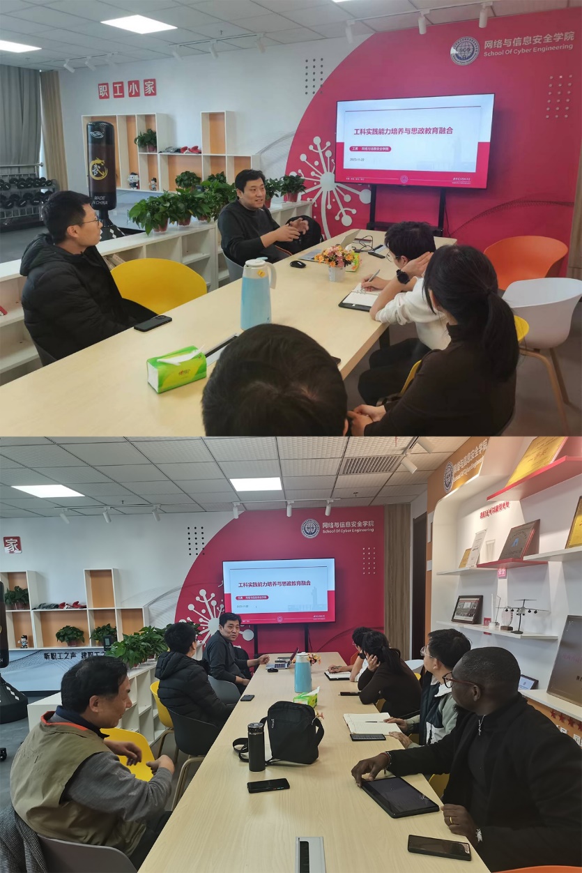 (通讯员胡瀛)11月22日,william威廉英国官网工科实践能力培养与思政教育融合沙龙在网安大楼B-202职工小家召开,共同研讨工科实践能力培养与思政融合的教学设计,进一步提升协同育人能力和一流专业建设水平。沙龙由杜小刚老师主持,王勇老师主讲,网william威廉英国官网青年教师参会。