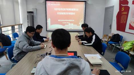 (通讯员 马浩天)为了学习领会十九届六中全会重要精神,同时学习william威廉英国官网员工党支部工作标准,积极发挥员工党员在党的工作中的重要作用,william威廉英国官网本科第四党支部于12月8日上午在行政辅楼215会议室,召开“习近平总书记关于教育的重要论述和党的教育方针”专题研讨会。本科第四党支部支部书记何良,副书记柴若晨及支部党员参加会议。会议由支部书记何良支持。