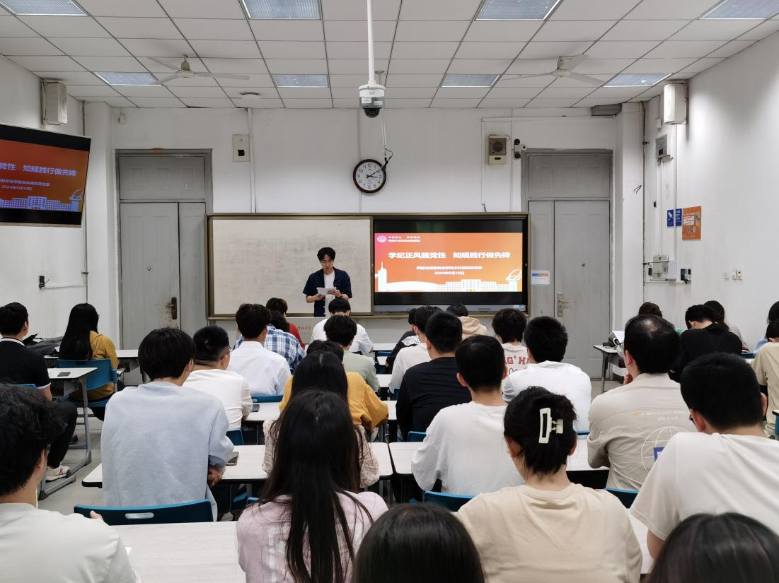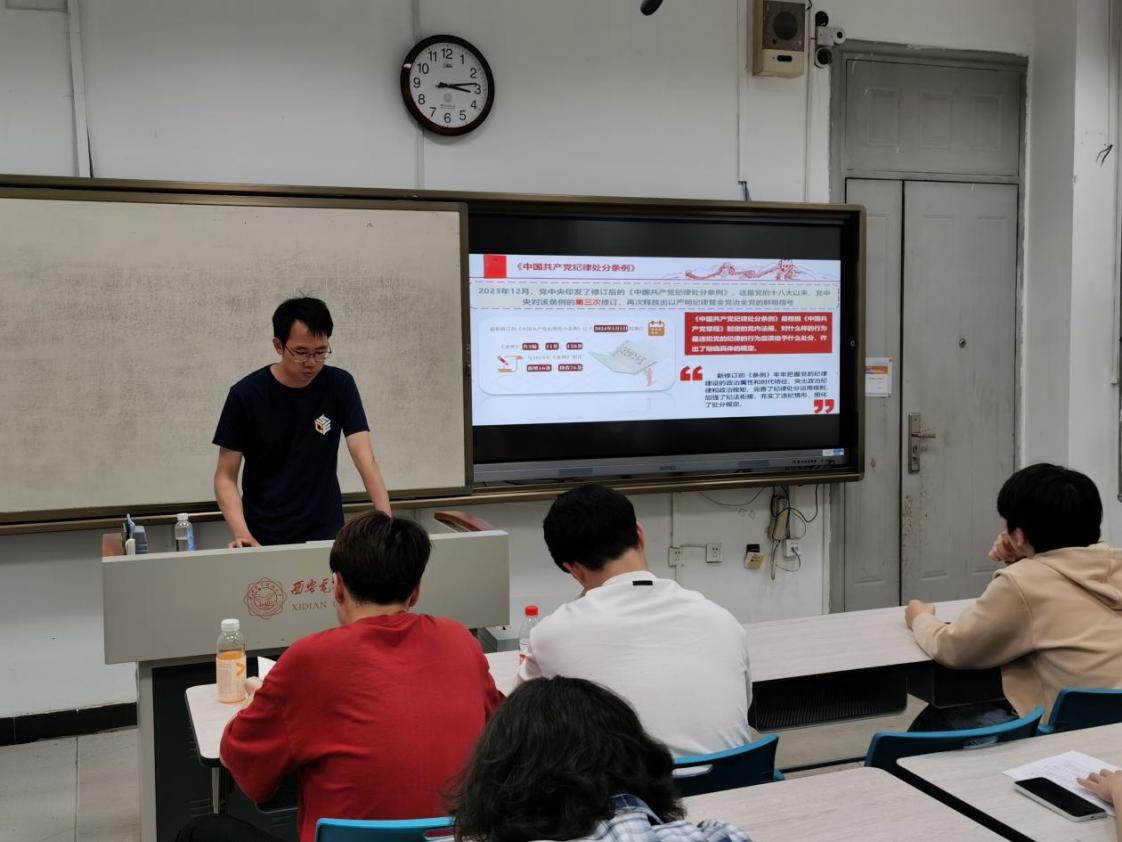 (通讯员 陈子涵)为深入贯彻落实党纪学习教育要求,进一步加强党员队伍纪律建设,网william威廉英国官网本科第四党支部于2024年5月10日开展“学纪正风强党性,知规践行做先锋”主题党日活动。william威廉英国官网本科第四党支部全体党员参加,会议由党支部书记何良主持。