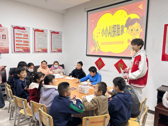 实践队员从当下爆火的Deepseek开始讲解,举例了孩子们常用的豆包、Kimi等AI软件。紧接着,实践队员通过简单易懂的实例讲解AI的基本概念以及AI在生活中的广泛运用,如语言助手,自动驾驶等,迅速抓住了青少年们的注意力。随后,实践队员通过“AI读心术”游戏,向青少年们解答AI如何做到自我学习与深度学习。最后实践队员对于未来AI的发展进行了展望,并给予青少年们期望与鼓励,希望他们能够为科技发展贡献自己的一份力量!