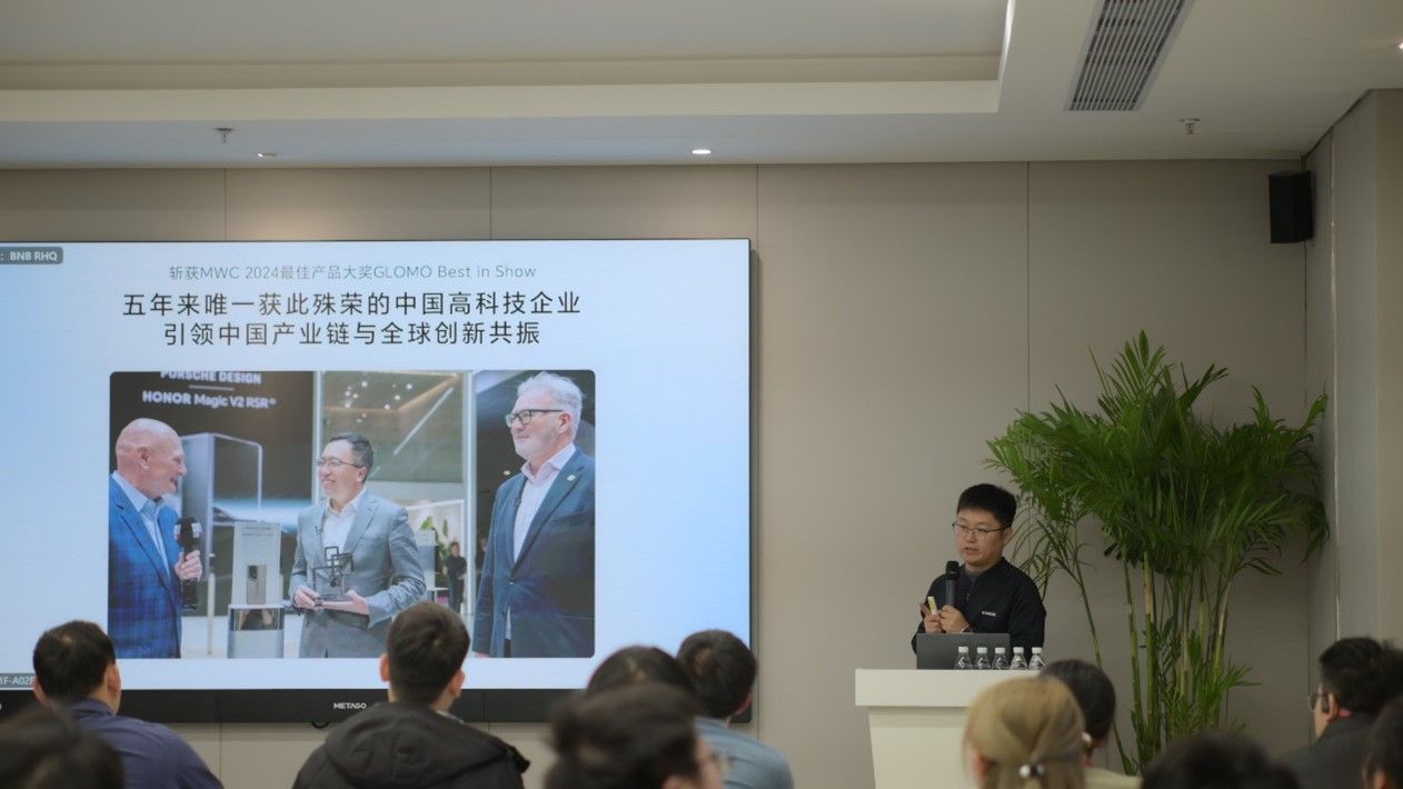 进入企业展示厅,在讲解员的带领下,师生们有序进入,在这里详细了解了企业的发展历程、企业文化以及科技成果。接下来,讲解员为师生们介绍了荣耀最新款手机、平板、电脑、智慧屏、智能穿戴设备等终端产品,并邀请师生们上手体验。通过体验,同学们对荣耀公司所生产的科技产品和研发实力有了更深刻的印象。