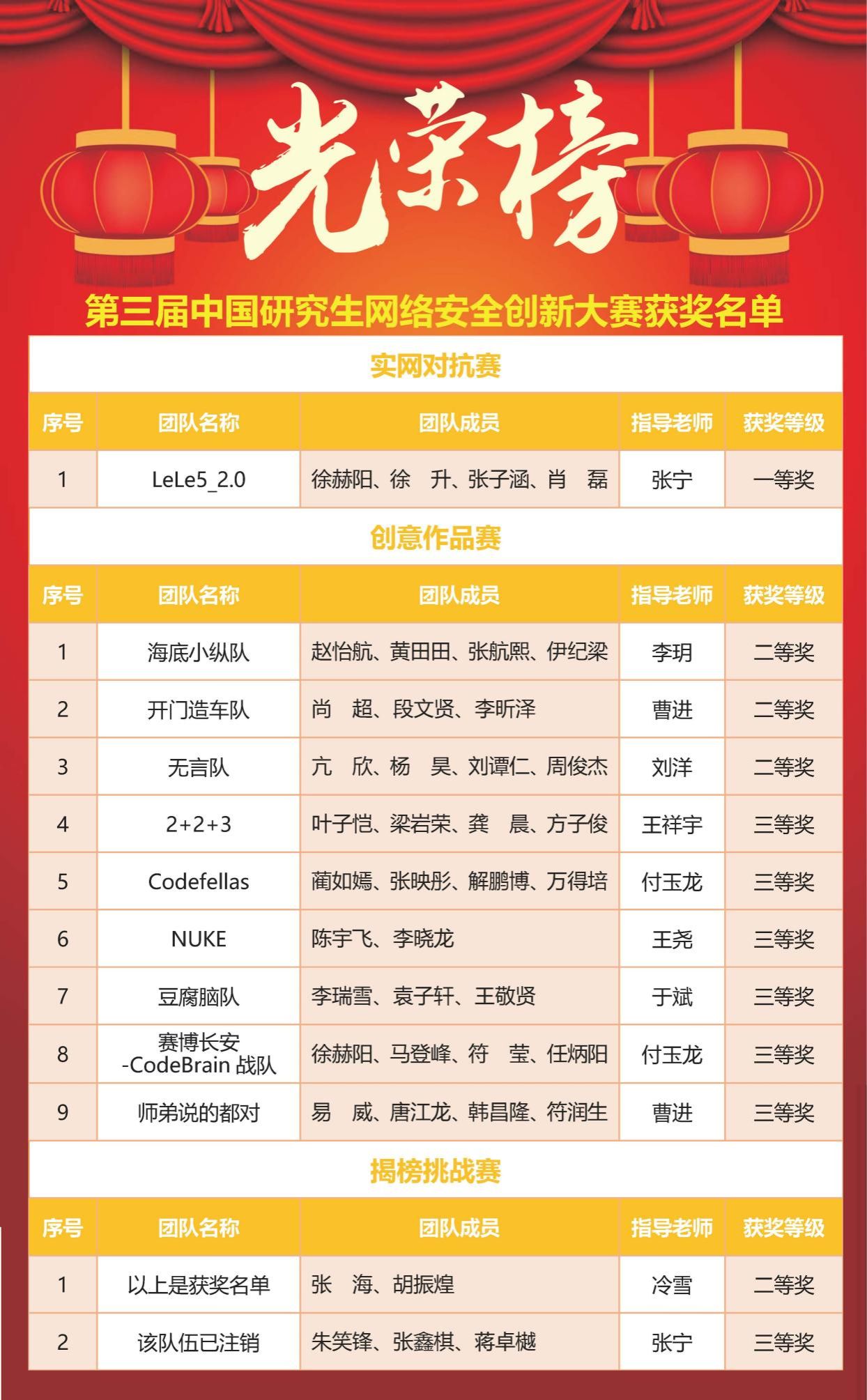(通讯员 陈强)近日,由教育部学位管理与研究生教育司指导、中国学位与研究生教育学会和中国科协青少年科技中心主办的“华为杯”第三届中国研究生网络安全创新大赛决赛落下帷幕。此次大赛以“守卫网络安全 培育网安人才”为主题,吸引了来自全国198所高校及科研院所的754支队伍、2544名研究生报名参赛。