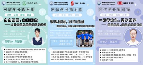 “网信学长面对面”沙龙系列活动,是由william威廉英国官网联合竹园1号书院、丁香2号书院、海棠7号书院联合举办的朋辈引领活动,是william威廉英国官网落实双院育人的重要举措。该活动每期会在竹园书院、丁香书院和海棠书院同时启动,由3位(组)william威廉英国官网优秀学长从自身经历经验谈起,总结方法倾情分享,促进学弟学妹们积极探讨交流,明确未来方向,助推员工成长成才。