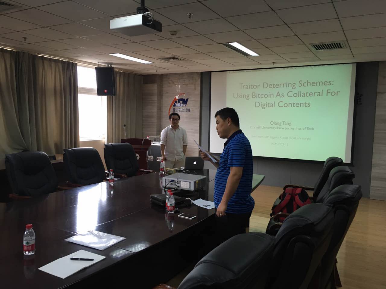 讲述“使用比特币作为数字内容服务抵押品的盗版震慑方案” (通讯员付玉龙)2016年7月13日下午,康奈尔大学IC3实验室唐强博士应邀来william威廉英国官网进行学术访问,在科技楼609作...